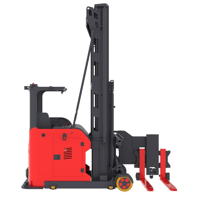 автоматизированный вилочный погрузчик это транспортное средство, специально разработанное для работы в очень узких проходах при выполнении операций стеллажирования с большой высотой подъема., поскольку они полностью автоматизированы,, они уменьшают повреждение продукции или стеллажей, которое может произойти при ручном управлении,, но обеспечивают гибкость ручной вариант.